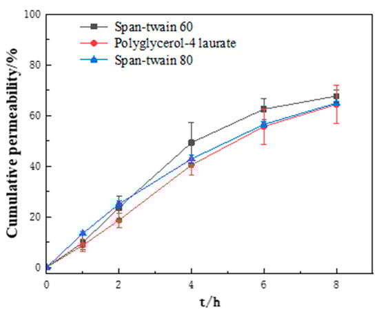 Cumulative permeability of nicotinamide under different emulsifiers (n = 3).