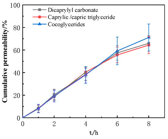 Cumulative permeability of nicotinamide under different oil conditions (n = 3).
