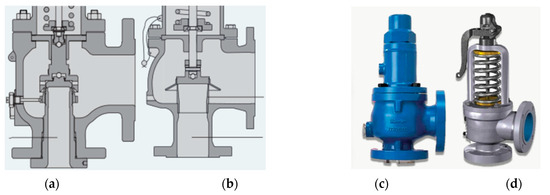 Special designs of PSVs: (a) full-nozzle; (b) semi-nozzle; (c) closed-bonnet; and (d) open-bonnet designs [54].