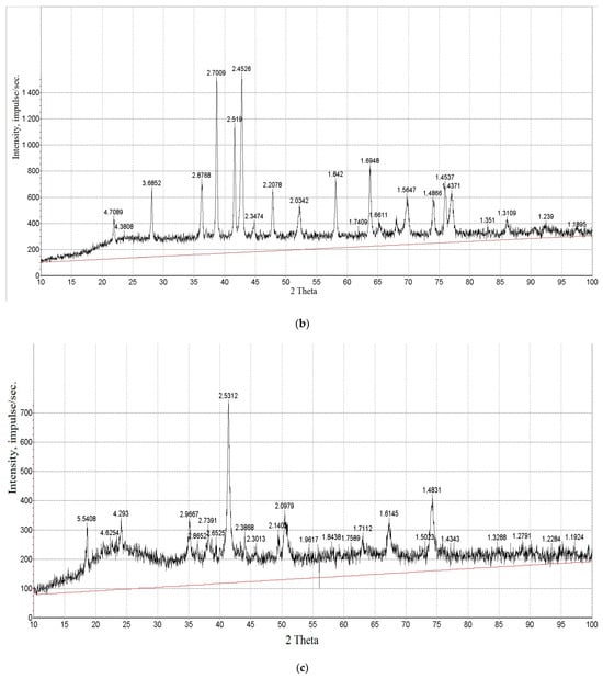In the case of cobalt oxide, diffraction peaks of spinel Co3O4 were revealed (Figure 3b,c).