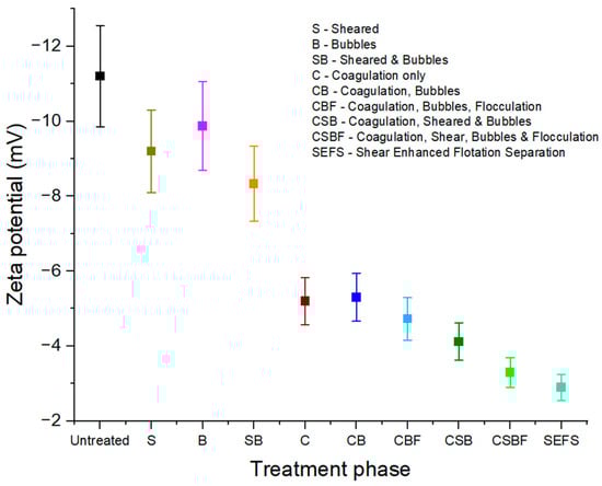 Figure 6 illustrates the correlation between the zeta potential and each respective treatment phase.
