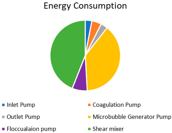The energy consumed to treat 1 m3 of winery wastewater using conventional DAF amounted to roughly 0.6 kWh/m3 whereas the SEFS treatment energy was 1.1 kWh/m3, as also illustrated in Figure 13. Although the energy requirement during SEFS treatment is over 1.5 times that of conventional DAF treatment, the quality of the treated wastewater may outweigh the overall energy costs, as shown in Table 8.