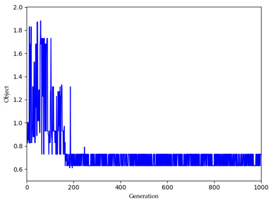 Figure 3 shows the convergence of the objective value when the algorithm iterates up to 1000 generations under the above experimental parameters. It can be seen that the algorithm tends to converge around the 200th iteration. Hence, for this experiment, a maximum of 200 iterations is chosen.