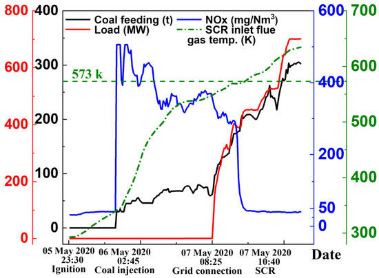 With the deceleration of electricity consumption growth and the proliferation of coal-fired generating units, these units are anticipated to serve the purposes of deep load modulation and standby to accommodate the rapid expansion of non-fossil energy generation [16]. Consequently, the operational hours of thermal power generation equipment are expected to further diminish. In the near future, extended operation at reduced loads and frequent start–stop cycles of coal-fired units will become standard practice [17,18,19,20,21]. Nonetheless, both deep load modulation and startup processes entail the risk of non-operational denitrification, which can result in excessive NOx emissions from the units.