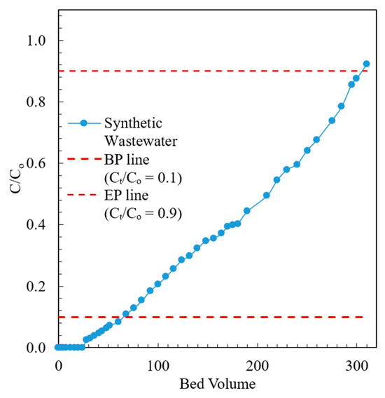 Effluent profile of modified chabazite fixed-bed column fed with synthetic wastewater.