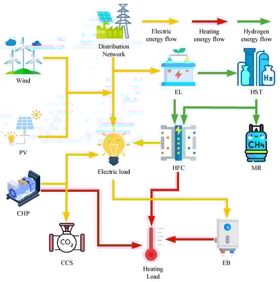 31. Chen, J.; Hu, Z.J.; Chen, Y.G.; Chen, J.; Chen, W. Thermoelectric optimization of integrated energy system considering ladder-type carbon trading mechanism and electric hydrogen production. Electr. Power Autom. Equip. 2021, 41, 48–55. [Google Scholar]