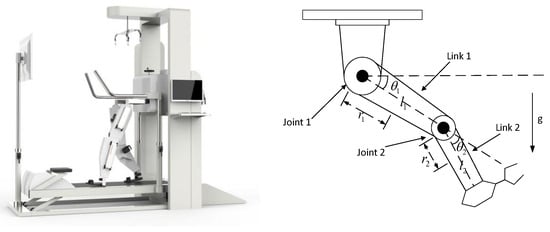 The planar model of a two-link rehabilitation robot [21] is given in Figure 2.
