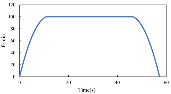 The second tripping plan is shown in Figure 16. In this case, it is assumed that the winch lacks sufficient horsepower to pull the drill string out of the wellbore at a rate of 200 ft/min from the bottom. Therefore, at the beginning, the tripping velocity is 100 ft/min, and the pumping flow rate is 150 gpm. Increase the tripping velocity to 200 ft/min when the load of the drill string acting on the draw works is low enough. At last, stop the pumping when the drill bit position is very shallow.