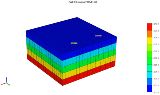 This numerical study takes a typical condensate gas reservoir as an example. The geological model of a condensate gas reservoir was established by using the Builder (GEM) module of CMG (Figure 1). Although this model cannot describe the characteristics of the entire reservoir, it can accurately describe the flow characteristics of the components in the process of formation and change. The proportion of the model was based on the actual reservoir, and the basic parameters of the model are shown in Table 1. The reservoir geological model contained a total of 2000 grid blocks. The initial pressure of the reservoir was 34473.8 Kpa and the initial temperature was 124.4 °C.