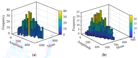 Histograms of mean and amplitude frequency for deep loosening. (a) Histogram of load amplitude, (b) histogram of load mean.
