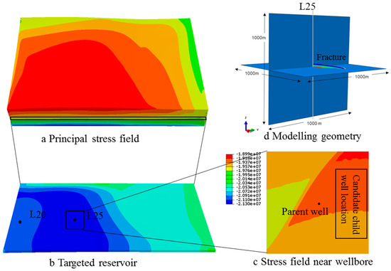 Horizontal stress field near wellbore; the candidate child well location was 200 m east of parent well L25.