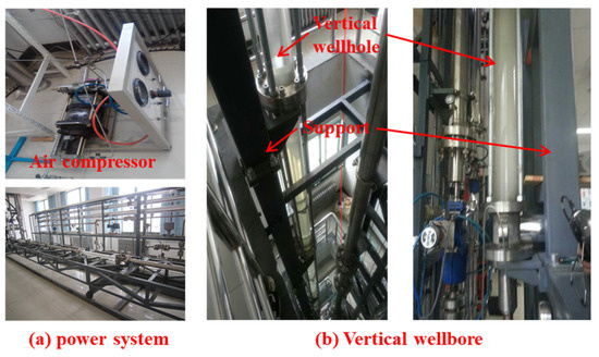 It is necessary to verify the applicability of both the self-designed computer program and the investigation methodology before using it for a case study. In this section, this purpose is achieved by comparing the results obtained using the program with the experimental results obtained using the self-made well control system. The self-made well control system was illustrated as Figure 5. It can be clearly seen from Figure 5 that the experimental system actually occupies an extremely large area, and it is placed in a laboratory covering an area of 200 m2. Furthermore, the composition of this experimental system is also extremely complex. As was observed in Figure 5, the well control experimental system mainly includes six subsystems. They are the fluid (gas, liquid) storage system, power system, fluid metering and control system, high-pressure annulus experiment module, gas–liquid separation system and back pressure control system. Among them, the fluid storage system includes a water tank (effective volume: 2 m3) and a gas tank (pressure: 10 MPa, volume: 100 L). The main component of the power system is a high-pressure air compressor with an outlet pressure of up to 10 MPa. In addition, the flow rate of gas and liquid in the system is realized by an electromagnetic flowmeter whose measurement accuracy is 0.5 L/min. The high-pressure annulus experimental module is a transparent plexiglass tube with a length of 15.0 m placed vertically. The inner diameter of the outer tube within the annular space is 120.0 mm, and the outer diameter of the inner tube is 63.0 mm. Based on this experimental system, the applicability of the investigation methodology in this work was verified.