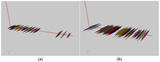 Comparison between the initial fracturing design and the subsequent refracturing design (different color represents different stages): (a) initial fracturing design; (b) refracturing design.