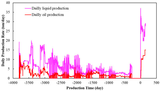 Over the course of 10 years, the well has produced a cumulative total of 20892 cubic meters of fluid and 7334 tons of oil. However, before undergoing refracturing, the well’s daily production had declined to 2.2 cubic meters of fluid and 0.8 tons of oil, with a water cut of 55.7%.