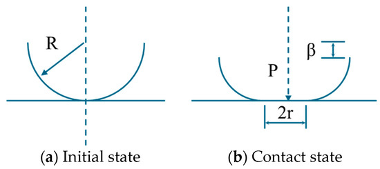 Considering the single micro protrusion as a sphere, the initial state of the sealing pair is depicted in Figure 2a; after applying the sealing force, the contact state of the sealing pair is illustrated in Figure 2b.