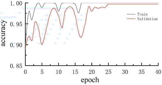 DenseNet achieves efficient feature reuse through dense connections, which allows it to perform well in small-sample training. However, due to its large number of parameters, its training speed is relatively slow, and it consumes significant computational resources. GoogLeNet utilizes the Inception module to extract multi-scale features, improving its accuracy in image classification tasks, though its ability in handling deep and complex tasks is inferior to ResNet. In contrast, ResNet, through residual networks, maintains depth while achieving higher accuracy with lower computational costs, demonstrating better generalization performance on large-scale datasets and complex scenarios. Through the above comparative analysis, the ResNet model is adopted for the identification of power insulators. The convergence curve of the loss function is shown in Figure 4, and the accuracy curve is shown in Figure 5.