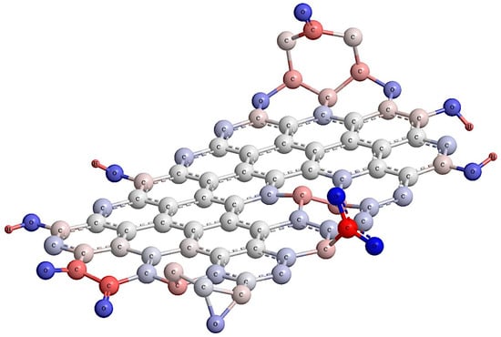 The proposed structure of AcBC-800 layer (the colors of the atoms are assigned based on their partial charges).