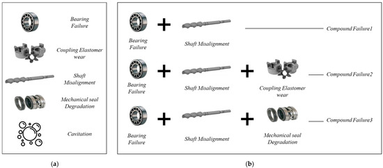 These failures can induce other types of failures. The correlation of these failures was analyzed through structural analysis. Among the five failure modes, cavitation, which occurs due to the vaporization of fluid, was excluded from the structural analysis. Structural analysis was conducted on the remaining four failure modes to understand their impact on other components and the mechanisms by which they cause additional failures. As a result, three additional compound failure modes were identified. The overall experimental conditions included the normal state, five primary failures, and three compound failures, totaling nine conditions for the experiments.