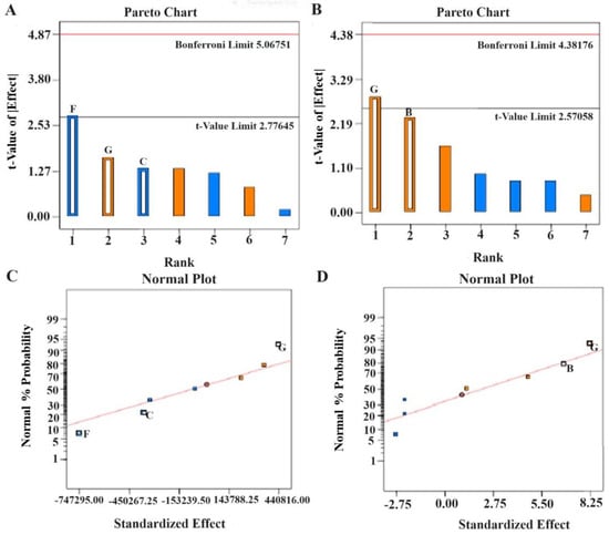 A screening (pre-optimization) study was carried out, which comprised selected factors (seven factors) using Design Expert software (version 9.8, Stat-Ease Inc., 1300 Godward St NE #6400, Minneapolis, MN, USA) to develop a robust analytical method (HPLC) for TOT estimation. These selected factors (A: acetonitrile concentration; B: flow rate; C: column temperature; D: trimethylamine concentration; E: injection volume; F: ethyl acetate concentration; and G: sample temperature) were screened at two different levels, that is, high level (+1) and low level (−1), aiming to select the most significant factors that affect peak area (maximum) and retention time (minimum). The Taguchi design comprised eight experimental runs and helped to identify the significant critical attributes (factors) [22].