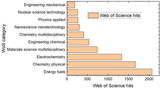 Corresponding to the previous discussion of possible energy storing techniques, papers about hydrogen energy safety can be classified into different categories, such as “energy fuels”, “chemistry physical”, or “electrochemistry”, while other engineering and natural sciences can be found (Figure 2).