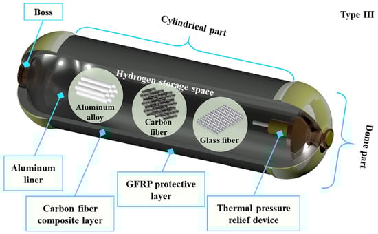 The inner structure of a Type III hydrogen storage tank. Reprinted from [13], with permission from Elsevier.