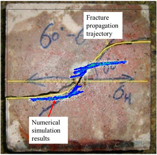Comparison of experimental fracture propagation trajectory with numerical simulation results.