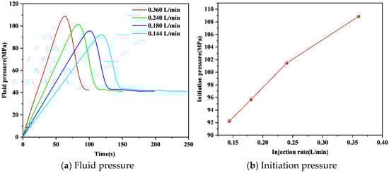 Fluid pressure and Initiation pressure of different injection rates.