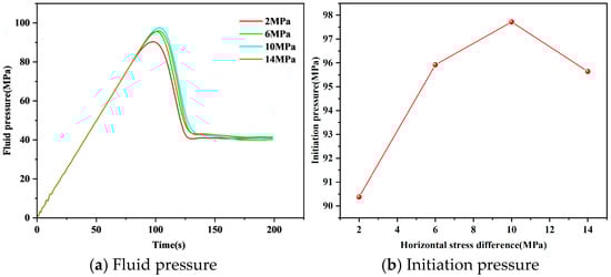 Fluid pressure and initiation pressure of different horizontal stress differences.