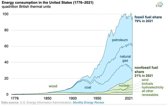 Energy consumption in the United States (Source: U.S. Energy Information Administration, June 2023 []).