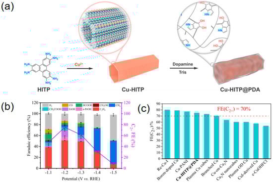 - Zhao, Z.H.; Zhu, H.L.; Huang, J.R.; Liao, P.Q.; Chen, X.M. Polydopamine coating of a metal–organic framework with Bi-copper sites for highly selective electroreduction of CO2 to C2+ products. ACS Catal. 2022, 12, 7986–7993. [Google Scholar] [CrossRef]