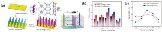 - Yan, T.; Wang, P.; Sun, W.Y. Single-Site Metal–Organic Framework and Copper Foil Tandem Catalyst for Highly Selective CO2 Electroreduction to C2H4. Small 2023, 19, 2206070. [Google Scholar] [CrossRef]