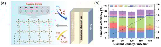 - Chen, R.; Cheng, L.; Liu, J.; Wang, Y.; Ge, W.; Xiao, C.; Li, C. Toward High-Performance CO2-to-C2 Electroreduction via Linker Tuning on MOF-Derived Catalysts. Small 2022, 18, 2200720. [Google Scholar] [CrossRef]