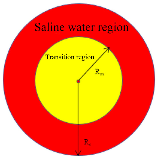 - According to research findings on the pressure distribution characteristics between different regions, it has been shown that, due to the additional resistance at the interface between the transition region and the saline water region, the pressure exhibits a discontinuous decline. This section uses the interfacial skin factor to describe the additional pressure drop characteristics at the interface between the transition region and the saline water region, as shown in Figure 2;