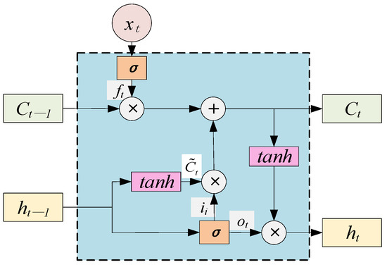 First proposed by Hochreiter and Schmidhuber in 1997, LSTM is a special kind of recurrent neural network designed to solve long-term dependency problems. The core of LSTM is the cell state. LSTM networks add and remove cell states through a gate structure. Three gates are included in an LSTM, namely: the forget gate, input gate, and output gate. A standard LSTM module is shown in Figure 1.