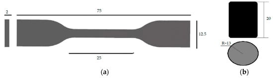 Dimensions of samples designed using SolidWorks software: (a) tensile specimen, (b) compressive specimen.