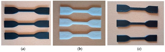 The material properties of PLA and PETG produced under the specified printing parameters are outlined in Table 5. This study delved into the tensile strengths of the specimens, determined by evaluating functionally specific volume ratios. For printing with PLA and CF–PLA, an optimal printing temperature of 210 °C was employed, while printing with PETG and CF–PETG required nozzle temperatures of 220 °C and 240 °C, respectively. Although Table 5 suggests an ideal bed temperature of 45 °C for PLA, a bed temperature of 70 °C was used for all prints involving PETG.