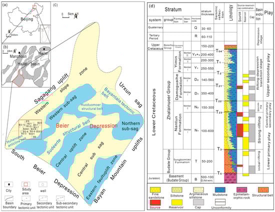 - Wu, H.; Li, H.; Liu, H. Sequence Composition Styles and Oil and Gas Accumulation Models of the Urxun Beier Depression in the Hailar Basin. Lithol. Oil Gas Reserv. 2015, 27, 155–160. [Google Scholar]