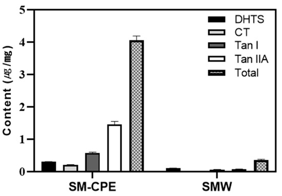 Content of tanshinones in SM sample extracted with different solvent (SM–CPE, SMW).