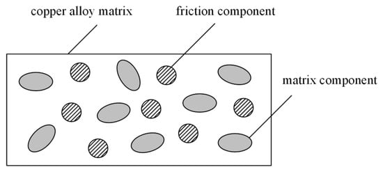The wind turbine brake system is the core component that ensures the safe operation of a wind turbine. Copper-based powder metallurgy materials used in the brake pad have a high thermal conductivity, high friction coefficient, low wear rate, and excellent mechanical properties, which are suitable for high-speed and heavy-load working conditions [,]. A small number of hard particles are uniformly added to the copper alloy matrix to optimize the properties of the materials so as to take into consideration the manufacturing process and economic benefits when copper-based powder metallurgy materials are prepared []. The hard particles in the copper alloy matrix are easily detached and pressed into the surface of the brake disc to form new abrasive particles and act on the brake pad during the brake process, constantly scratching the surface of the brake pad []. The scratching action creates frictional resistance, which is the main cause of abrasive wear on the brake pad. The size of the hard particles that fall off during the braking process is in the micrometer range, which belongs to the micro-scale category [].