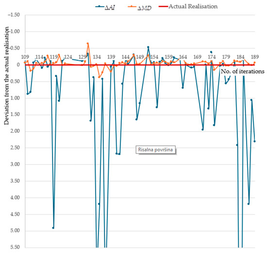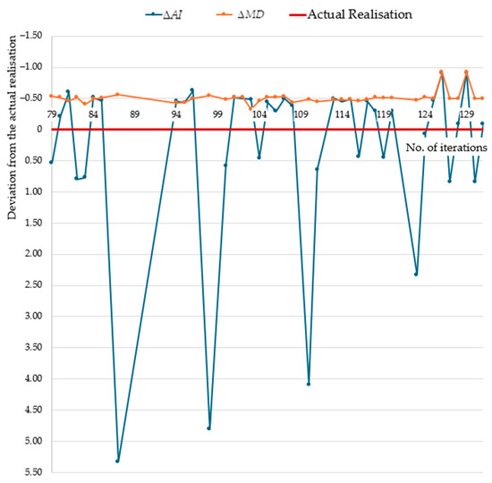Behaviour of ∆AI and ∆MD in relation to the actual realization—ID 272811.