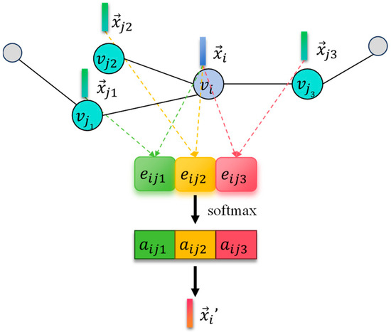 To allocate better weights, the correlation between all adjacent nodes is subjected to Softmax normalization. Then, the attention coefficient is obtained by