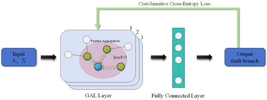 Here, the GAT consists of three multi-head attention mechanism graph attention layers and one fully connected layer. The first two GALs have three attention heads, and the third GAL has six attention heads.
