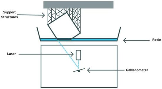 On the other hand, the stereolithography apparatus (SLA) technique is renowned for its precision and accuracy [51]. First introduced by the company 3D Systems in 1986, it was the first 3D-printing method to become commercially accessible. This approach allows parts to be produced directly from a CAD file, providing higher levels of accuracy and resolution compared to alternative 3D-printing methods. Although the majority of 3D-printing processes typically achieve layer thickness accuracy of 50–200 μm, stereolithography stands out because it is capable of manufacturing objects with a layer thickness accuracy of 20 μm [52]. The geometry of structures can be obtained from 3D CAD files or scan data from imaging methods such as magnetic resonance imaging (MRI) or 3D scanning. This makes it extremely useful for biomedical engineering, allowing the production of patient-specific or implant-specific models.
