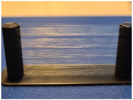 However, PETG has some disadvantages. Although it has a commendable combination of features, it does not have the same level of printability as PLA. Achieving optimal results requires the further optimization of printing parameters. Additionally, PETG exhibits greater heat resistance compared to PLA but falls short of the heat resistance offered by ABS. Also, while PETG has high strength, it does not have the same level of stiffness as ABS, which can be a disadvantage in applications that require high stiffness. Finally, PETG is typically more expensive than PLA and may have limited availability in certain regions or for certain color options and formulations, which could be a factor to consider for projects with financial constraints [81]. Due to its viscosity, PETG can be susceptible to unwanted residue, which requires careful management of retraction settings during the printing process. Figure 14 illustrates such a case.