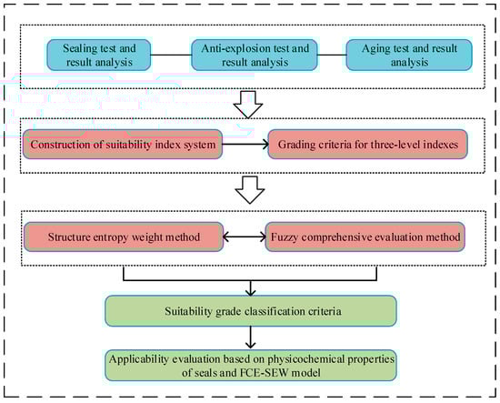 The structure of the methodology in this paper includes the analysis of the hydrogen-doped sealing performance of non-metallic seals, the analysis of hydrogen-doped anti-explosion performance, the analysis of hydrogen-doped aging performance, the construction of a risk indicator system based on hydrogen-doped sealing performance, the calculation of indicator weights, fuzzy comprehensive evaluation, and a case application, The specific evaluation processes is shown in Figure 1.