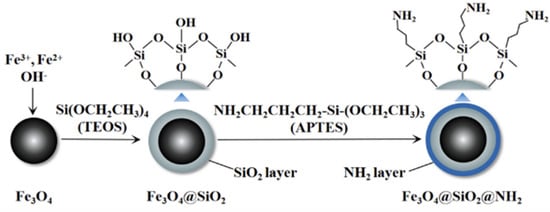 Fe3O4 @SiO2 @NH2 preparation process. (Reprinted with permission from [96]).