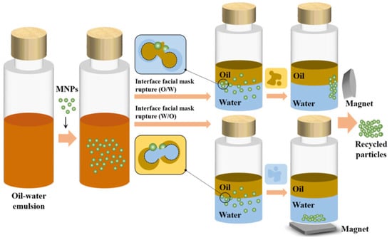 Another approach to enhance the demulsification process is to functionalize the magnetic particles, thus increasing the specificity of their surface (Figure 7).