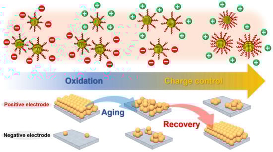 - Cernohorský, O.; Grym, J.; Yatskiv, R.; Pham, V.H.; Dickerson, J.H. Insight into Nanoparticle Charging Mechanism in Nonpolar Solvents to Control the Formation of Pt Nanoparticle Monolayers by Electrophoretic Deposition. ACS Appl. Mater. Interfaces 2016, 8, 19680–19690. [Google Scholar] [CrossRef]