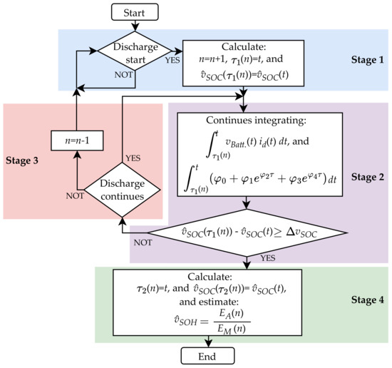 Figure 6 shows the algorithm used for real-time SOH estimation in (15) using the proposed partial discharge method, where the inputs are , , and .