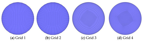 An O-type grid was adopted in this study and four different grid quantities were set by changing the radial grid density, as shown in Figure 2. The specific grid data are presented in Table 3.